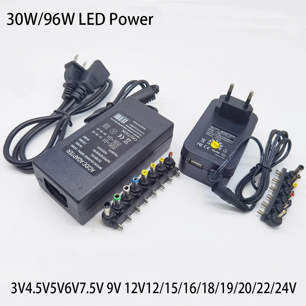 30W/96W 3V4.5V5V6V7.5V 9V 12V12/15/16/18/19/20/22/24V 2A/4,5A AC DC adaptador de corriente ajustable suministro de cargador Universal