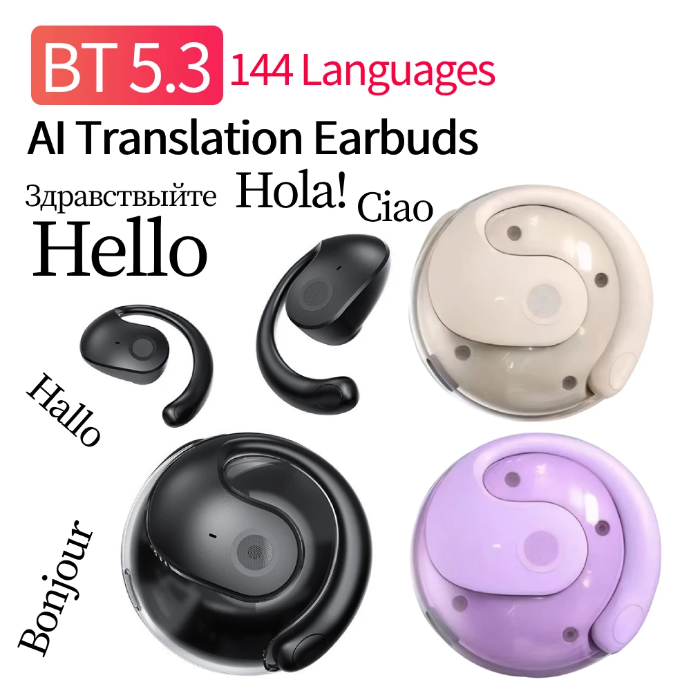 Auriculares inalámbricos de traducción BT AI Precisión del 99% 144 idiomas Auriculares de traducción de idiomas en tiempo real Traductor de voz inteligente para viajes, negocios y aprendizaje
