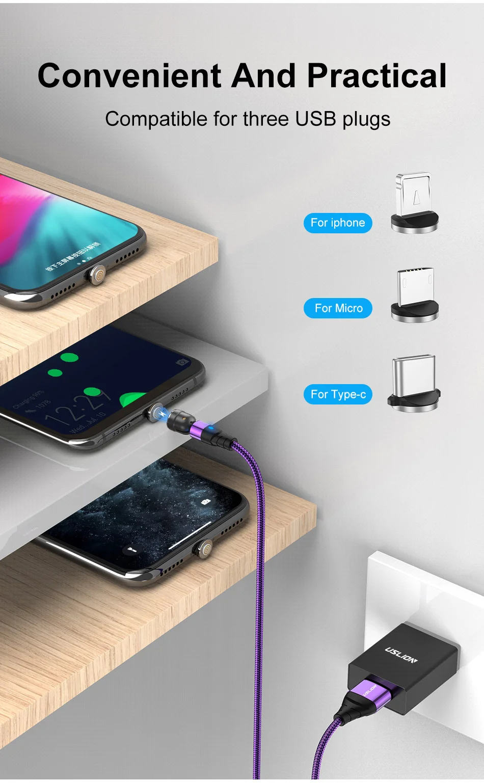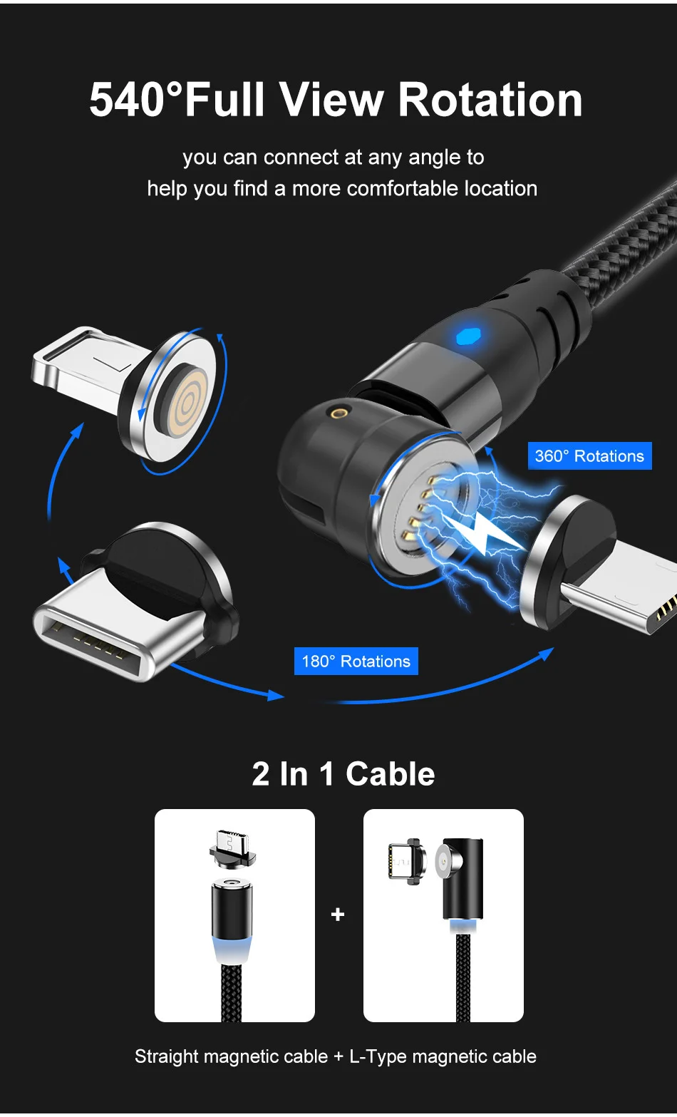 1. Cable magnético giratorio de 540 grados y 5 A