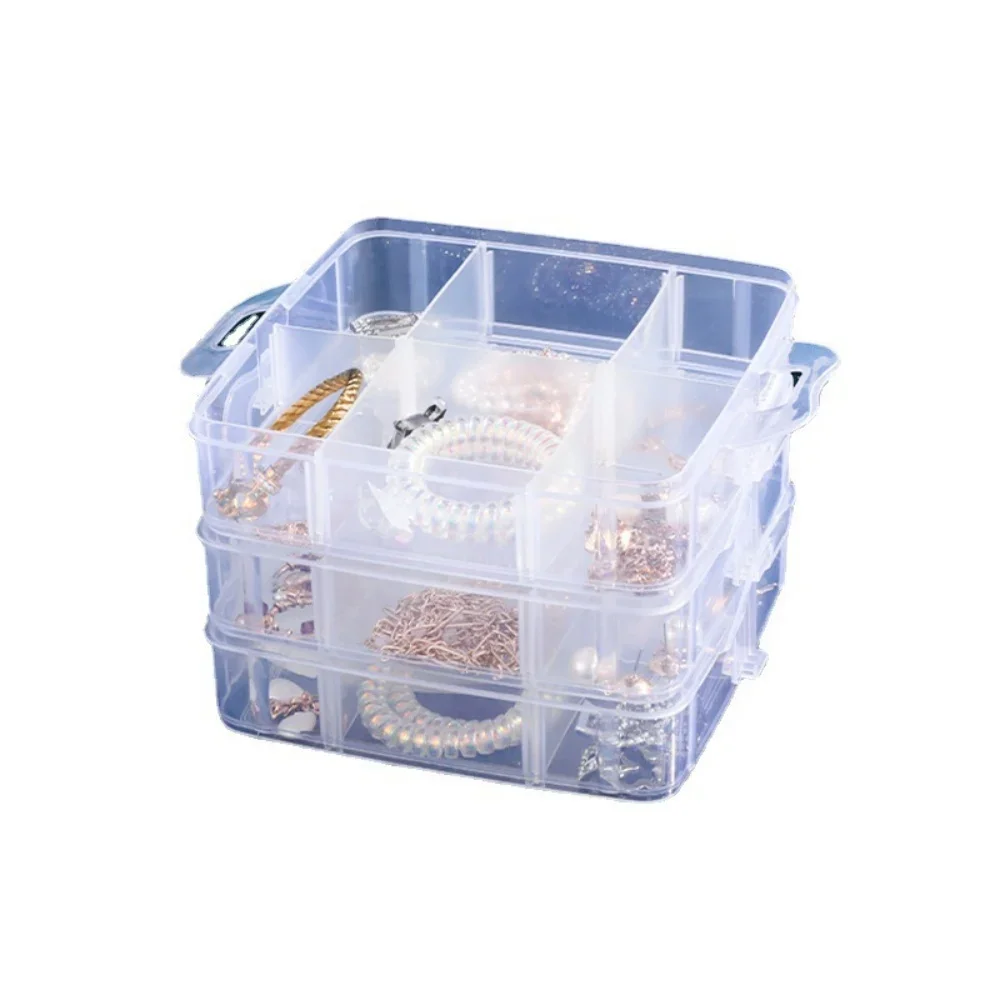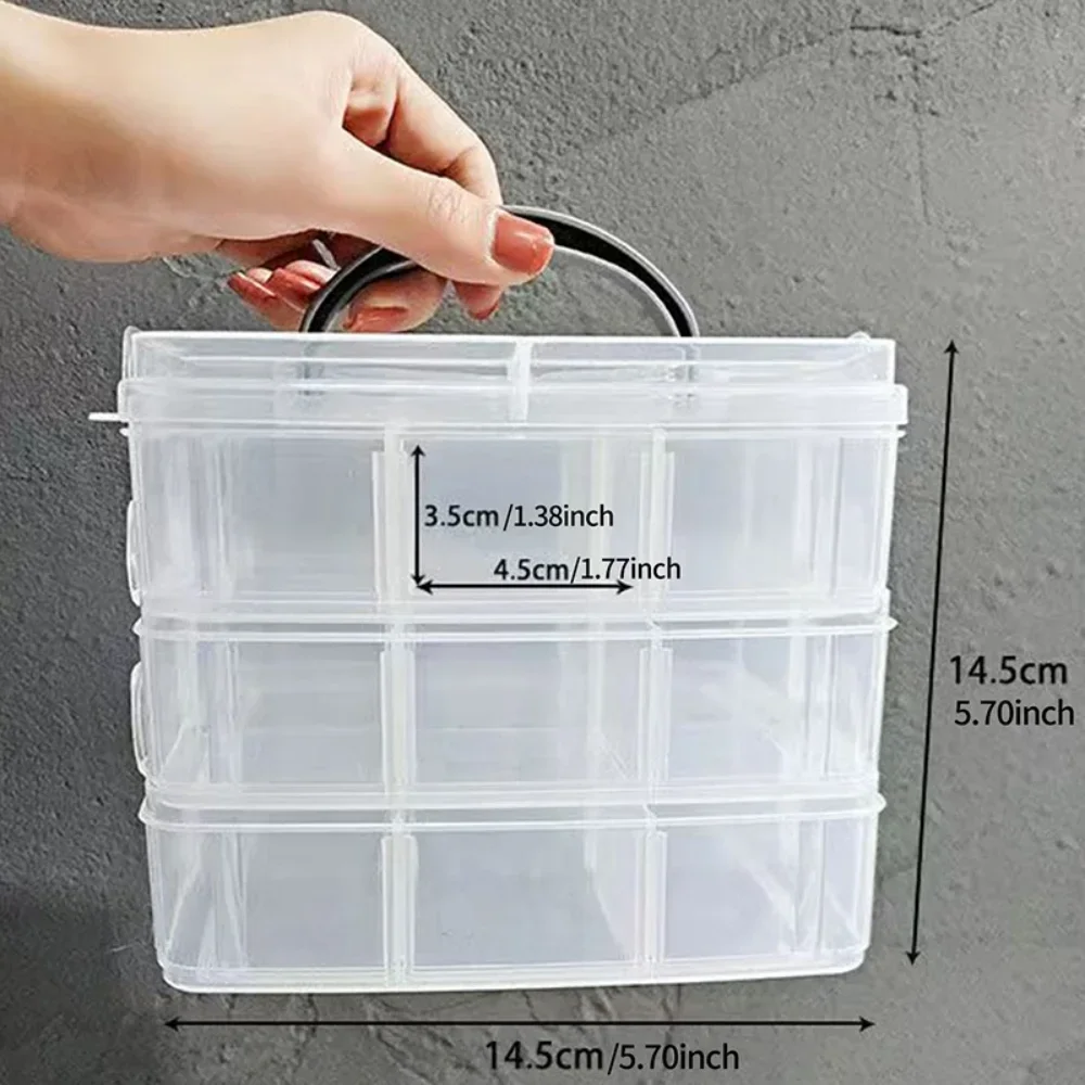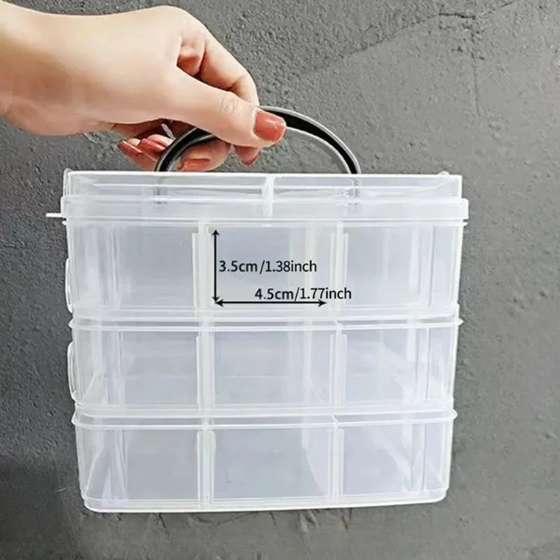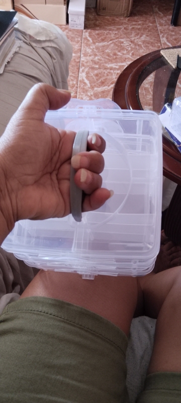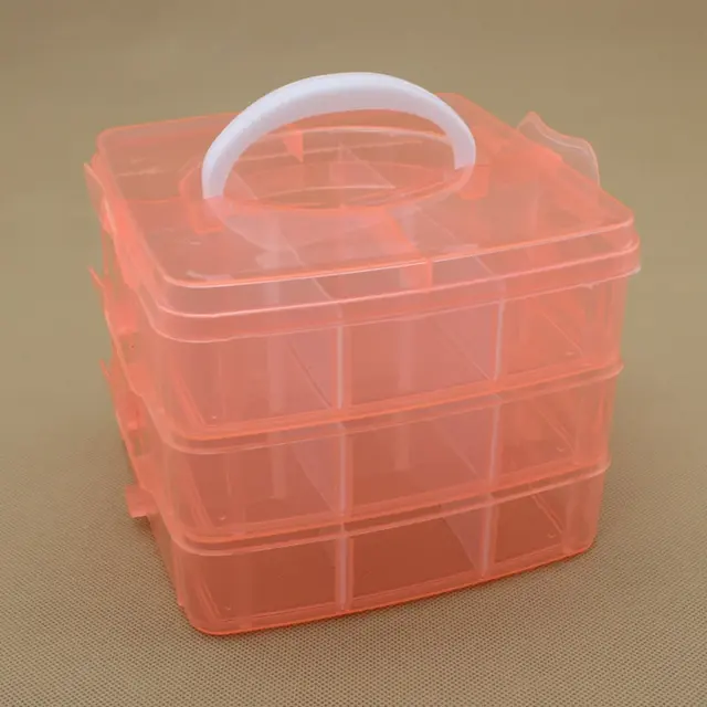 caja cco 3 pisos , cada uno con 6 departamentos, y su tapa. se aprecia tamaño por mi mano en fotos. plástico fuerte, con cierres larerales