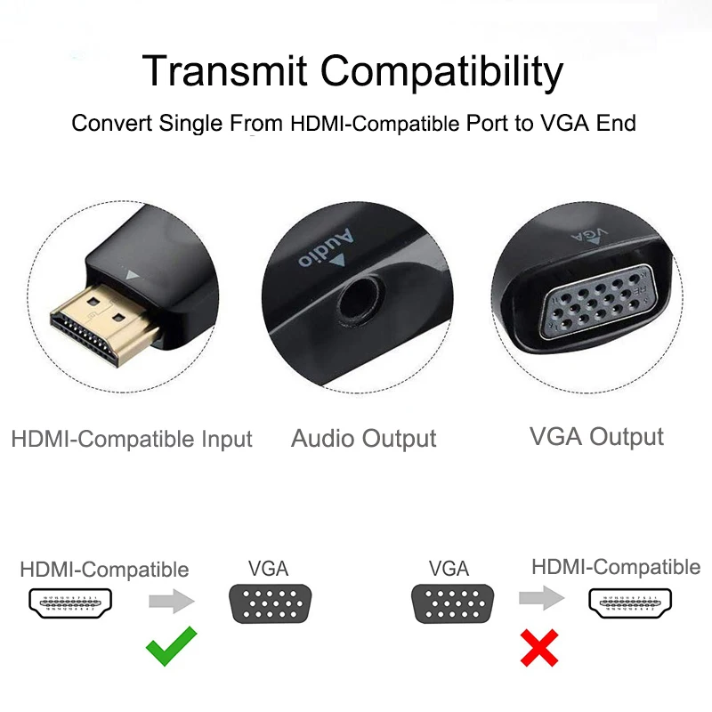 Este producto es un convertidor portátil compatible con HDMI a VGA, puede convertir la señal digital compatible con HDMI en señal analógica VGA. Puede ser compatible con el dispositivo que funciona con la función de salida compatible con HDMI, como PS3,Xbox360,Mac Mini, computadora portátil, decodificadores HD, ECT y compatible con los dispositivos VGA como HDTV,Monitor,Project,ect. Con el cable de audio, no solo puede disfrutar de la imagen de alta definición, sino también de un sonido de alta calidad.